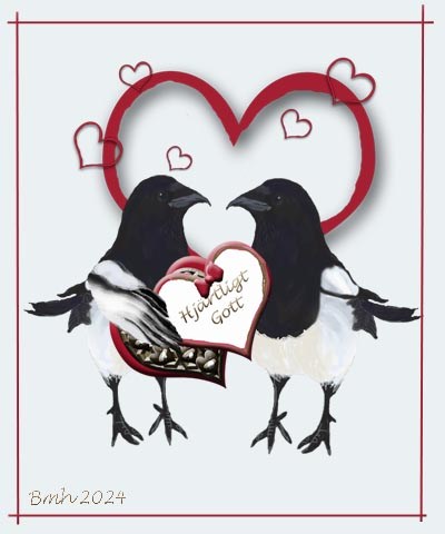 - Vem ska du uppvakta på Alla hjärtans dag Sara? frågar Klara - Tänkte köpa choklad till pappa och mamma säger Sara, egentligen ska man väl ge till någon man är kär i men jag är bara kär i någon utom er min familj.- Det är inte så bara det du Sara svarar Klara. - Kan vi inte köpa choklad till oss alla i familjen som vi kan dela på säger Klara.- Hallå vad är det för prat om kär och kär och köp och köp säger Sven- Det är alla hjärtans dag och vi ska köpa choklad till alla i vår familj som vi är kära i säger Sara, vill du vara med. - Självklart svarar Sven jag är mycket, mycket kär i mig själv, svarar han med ett leende