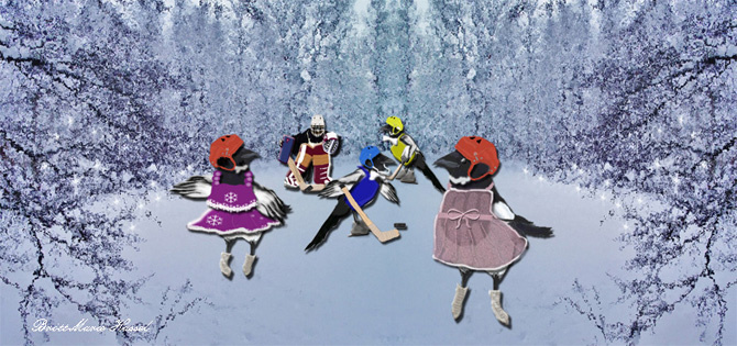 Vecka 7- 10b eroende på var du bor, bränslelov infördes av Bränslekommissionen 1940 för att spara på uppvärmningen av skolorna. Då behövde de lediga skolbarnen något att sysselsätta sig med därför ordnades med olika fysiska aktiviteter. Här har en del av syskonen med kompisar plockat fram hockeyutrustning och skridskor till träning på isdans.
